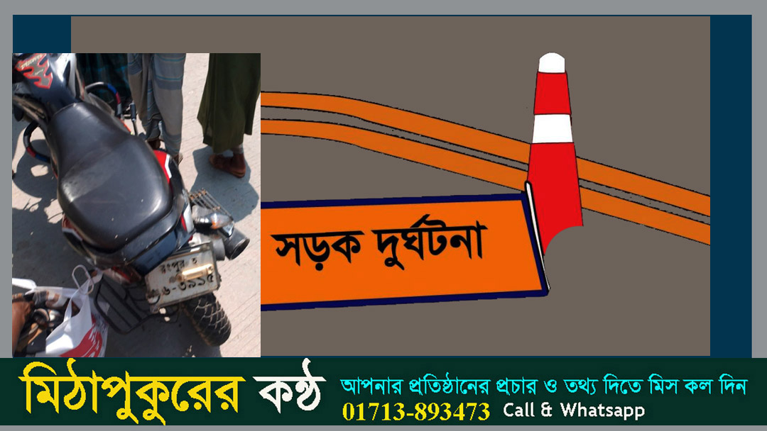 রংপুরের মিঠাপুকুর উপজেলার ঢাকা-রংপুর মহাসড়কের গড়ের মাথা এলাকায় মর্মান্তিক সড়ক দুর্ঘটনায় আনিসুর রহমান (৫৮) নামে এক মোটরসাইকেল আরহী নিহত হয়েছেন। বৃহস্পতিবার (২ এপ্রিল) দুপুর ১টার দিকে এই দুর্ঘটনা ঘটে। এতে গুরুতর আহত হয়েছেন ফাতেমা বেগম (৬০) নামে এক নারী।