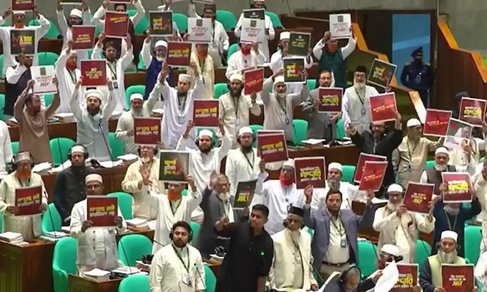 সংসদে রাষ্ট্রপতি প্রবেশ করতেই ‘জুলাইয়ের গাদ্দার’ প্ল্যাকার্ড প্রদর্শন