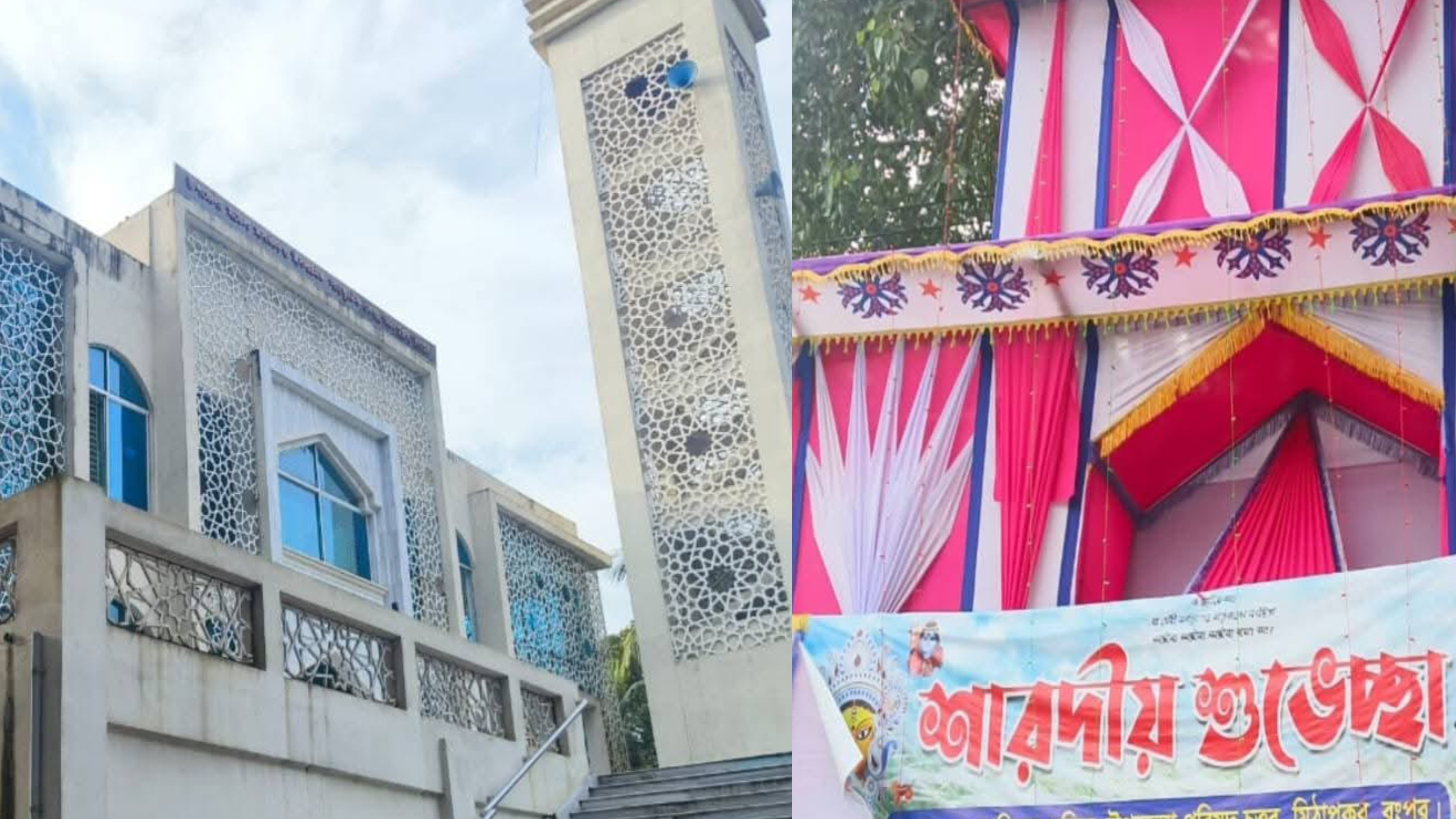 স্টাফ রিপোর্টারঃ রংপুরের মিঠাপুকুর উপজেলা পরিষদ চত্বর আঙিনার এক পাশে মসজিদ, অন্য পাশে মন্দির। অভিন্ন আঙিনায় পাঁচ ওয়াক্ত নামাজ পড়েন মুসল্লিরা। মন্দিরে সকাল-সন্ধ্যা চলে প্রাত্যহিক পূজা-অর্চনা। একই স্থানে দুই সম্প্রদায়ের