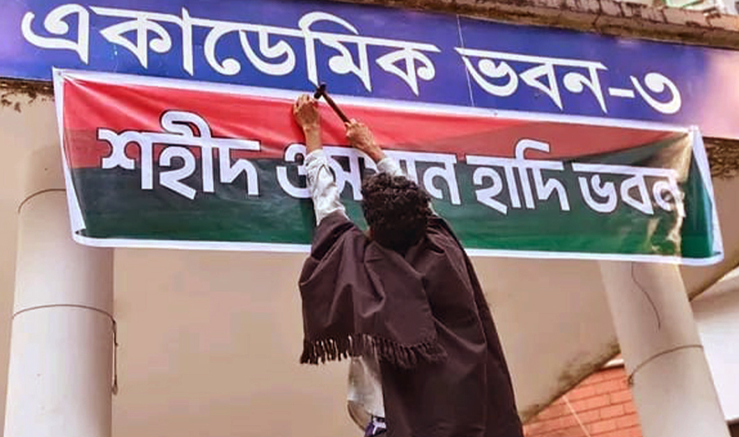 অনলাইন ডেস্ক: রংপুরের বেগম রোকেয়া বিশ্ববিদ্যালয়ে (বেরোবি) আধিপত্যবাদবিরোধী দুই শহীদ শরীফ ওসমান হাদি ও আবরার ফাহাদকে স্মরণে রাখতে তাদের নামে দুটি একাডেমিক ভবনের নামকরণ করেছেন শিক্ষার্থীরা। সোমবার (২২ ডিসেম্বর) বিকেলে