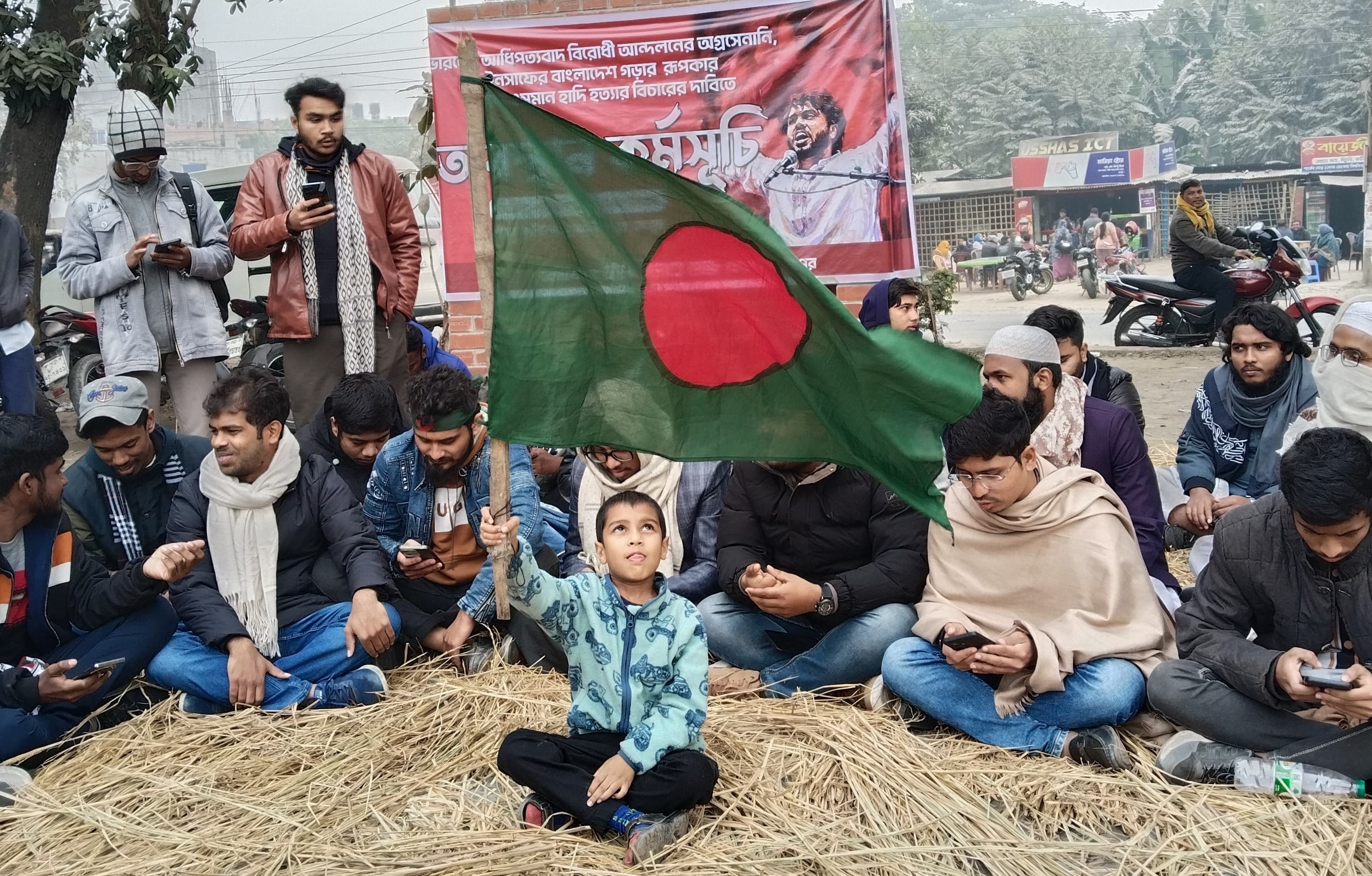 পারভেজ হাসান, বেরোবি: ভারতীয় আধিপত্যবিরোধী আন্দোলনের অগ্রসেনানি ইনসাফের বাংলাদেশ গড়ার রূপকার শহীদ শরীফ ওসমান হাদি হত্যার বিচারের দাবিতে অবস্থান কর্মসূচি পালন করছে ইনকিলাব মঞ্চ বেরোবি ও রংপুর। সোমবার বেলা ১২টা