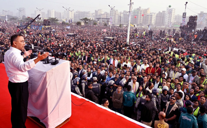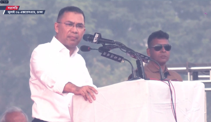 অনলাইন ডেস্ক: হযরত শাহজালাল আন্তর্জাতিক বিমানবন্দর থেকে লাল-সবুজ বাসে করে ৩০০ ফিট এলাকার গণসংবর্ধনা মঞ্চের উদ্দেশ্যে আসেন বিএনপির ভারপ্রাপ্ত চেয়ারম্যান তারেক রহমান। প্রিয় নেতার আগমন উপলক্ষে বিমানবন্দর থেকে ৩০০ ফিট